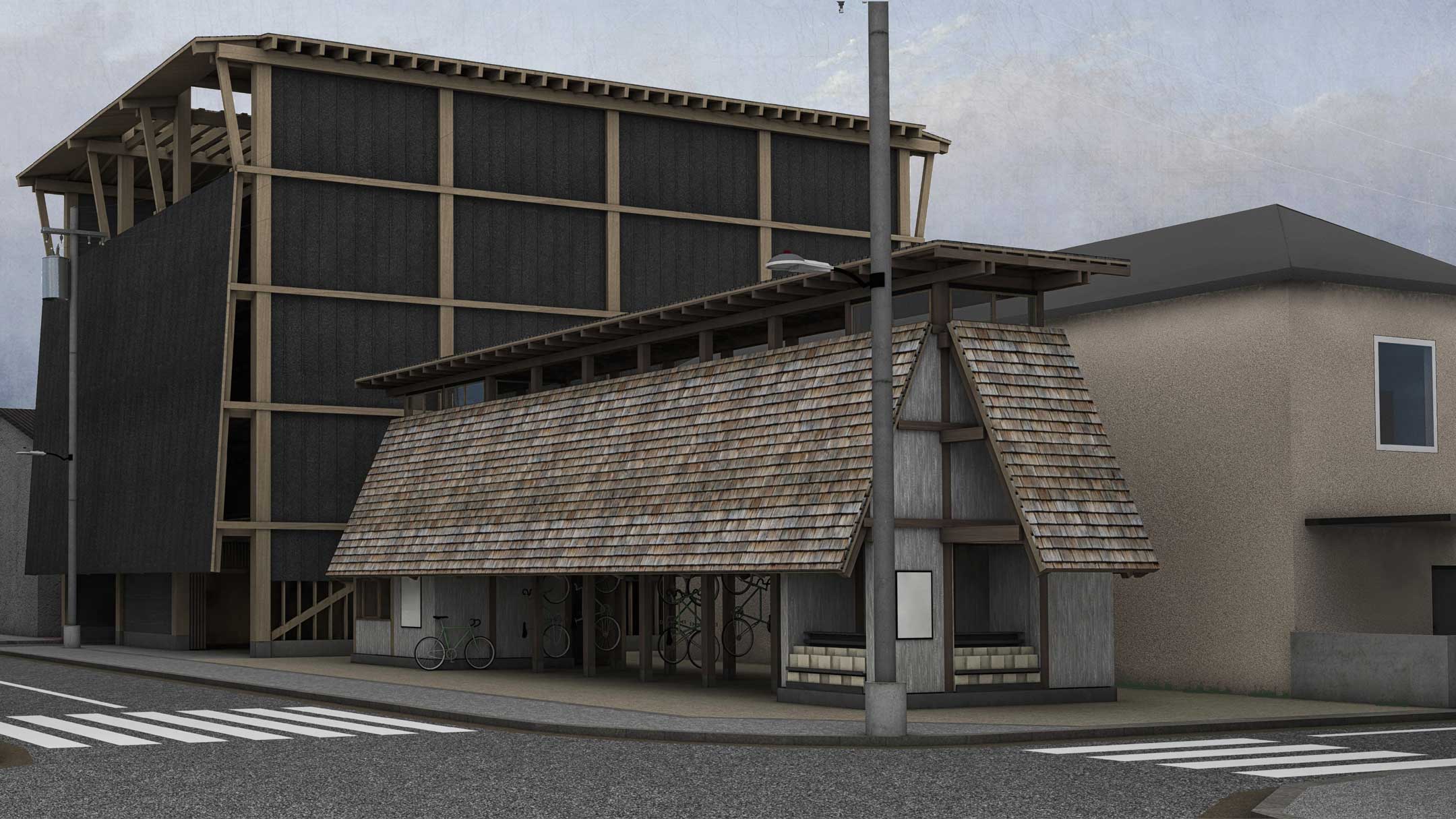This project investigates the latent potential of Basel’s backyards (Hinterhöfe) by repurposing existing structures such as garages and old workshop buildings—remnants of 20th-century infrastructure. The initiative aims to reimagine property ownership and proposes transforming these garages into new, low-profit housing units, thereby revitalising the courtyards as semi-public spaces. The individual living units are designed with a lightweight and easily disassembled construction system. Beyond the housing units, the courtyard is enhanced with café and office spaces, fostering a vibrant microcosm and promoting diversity. This transformation also results in new connecting routes within the city fabric, providing a seamless link between Klingelbergstrasse and Maiengasse. These new pathways enhance urban mobility and accessibility, integrating the courtyard development more cohesively into the surrounding urban landscape.