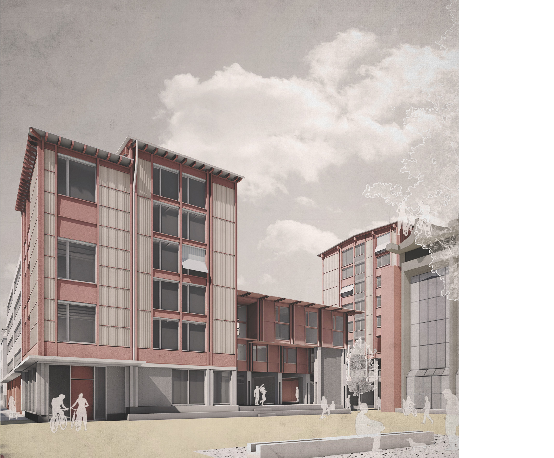 The project, inspired by an anecdote of a tree, a moth, and a bird explores how biodiversity fosters social connection, offering a series of targeted interventions in five urban conditions identified within the Gundeldingen neighbourhood: the primary axis, Güterstrasse, extending to the intersection with Reinacherstrasse; the vertical secondary axes; Tellplatz square and the courtyards of perimeter blocks. For each condition, the project offers a transformation of its urban asset, starting with a change in materiality, a redistribution of green spaces, and a transformation of the street from a space exclusively used for transit to a space for social interactions. The final objective of these proposals is to tackle upcoming temperature issues and their consequences on biodiversity’s survival in densely populated and built environments, while cherishing and protecting Gundeldingen’s urban unicity.