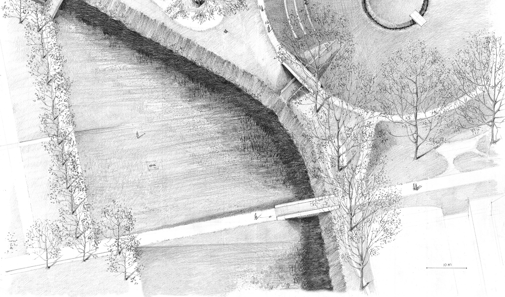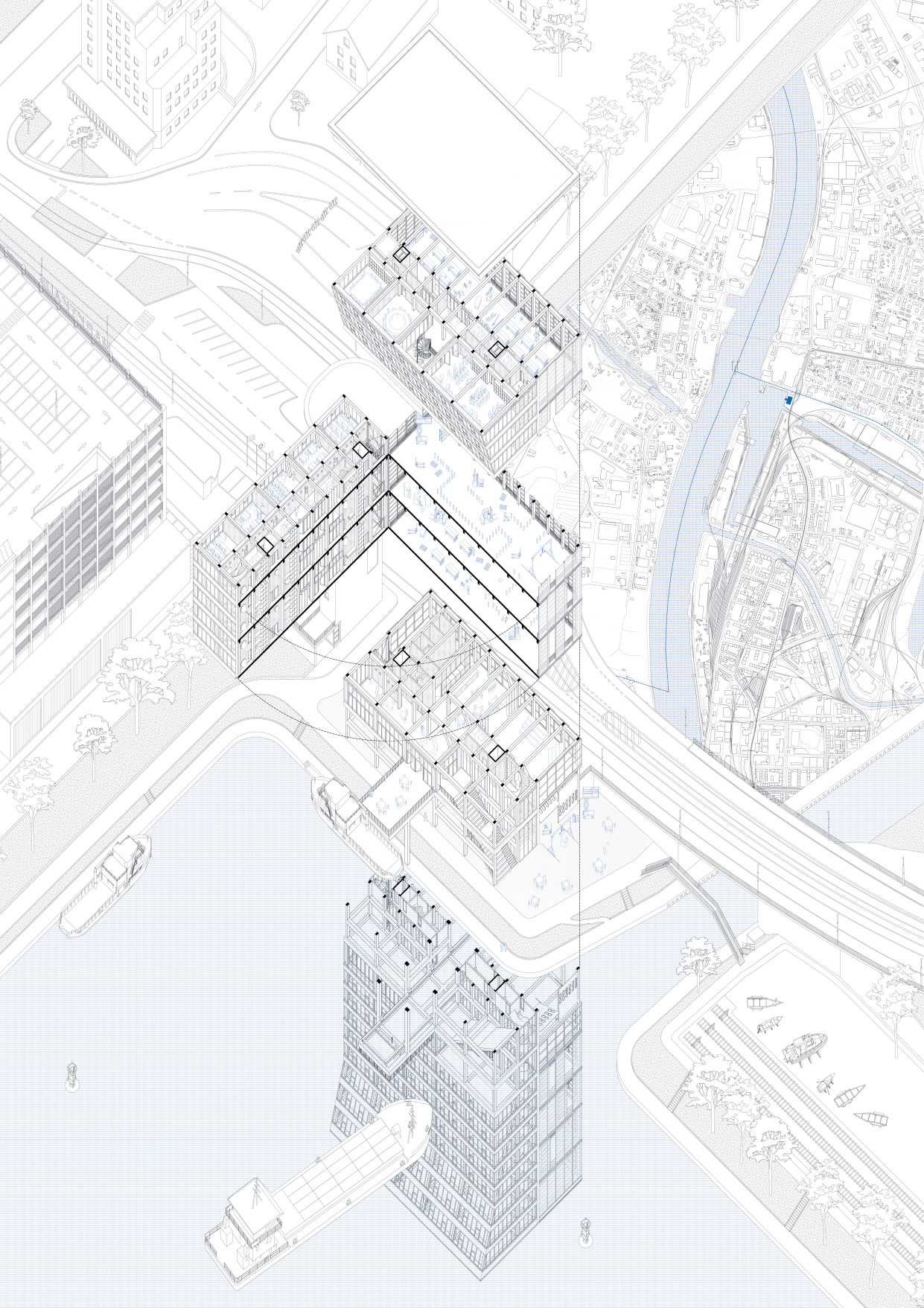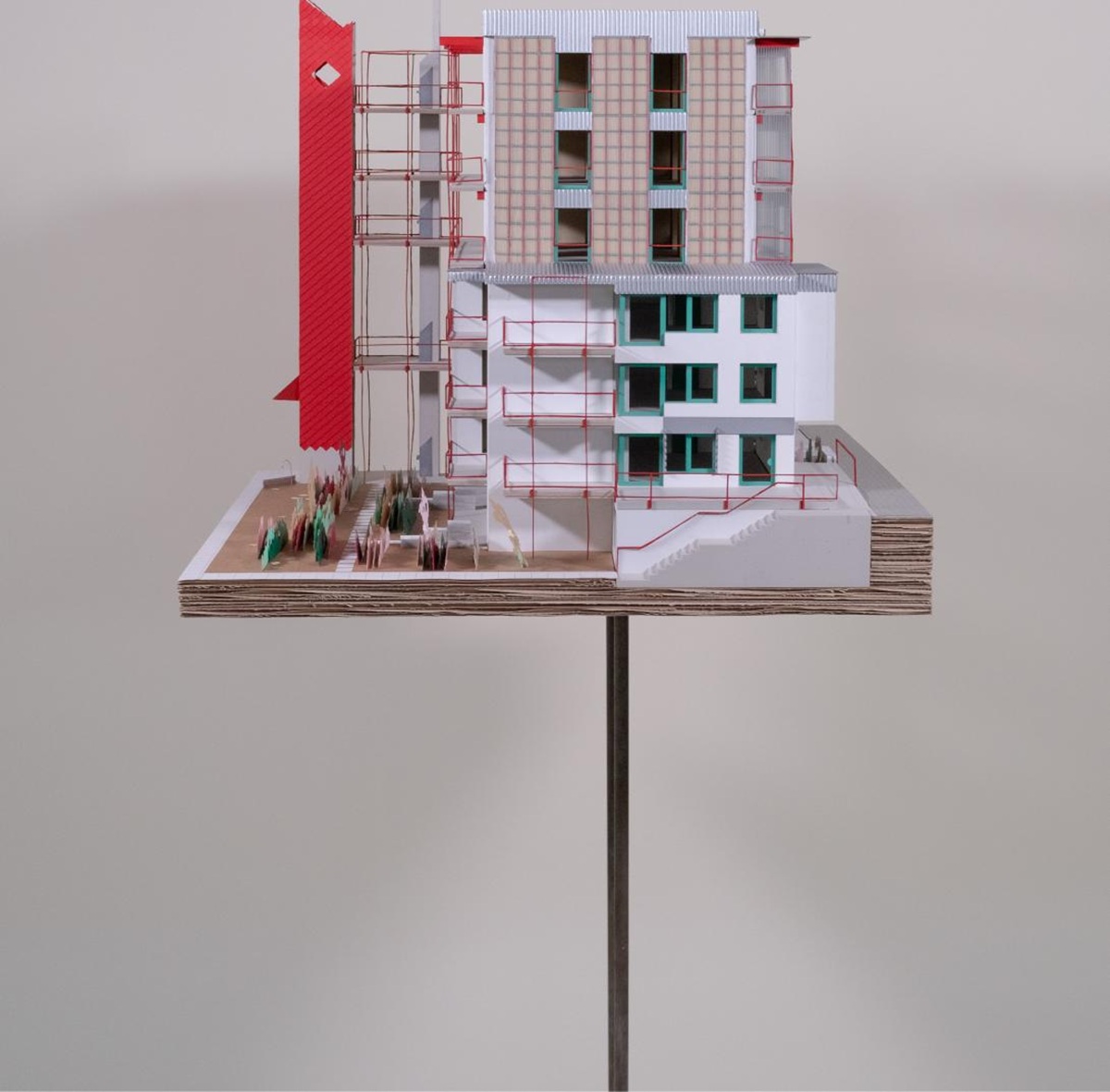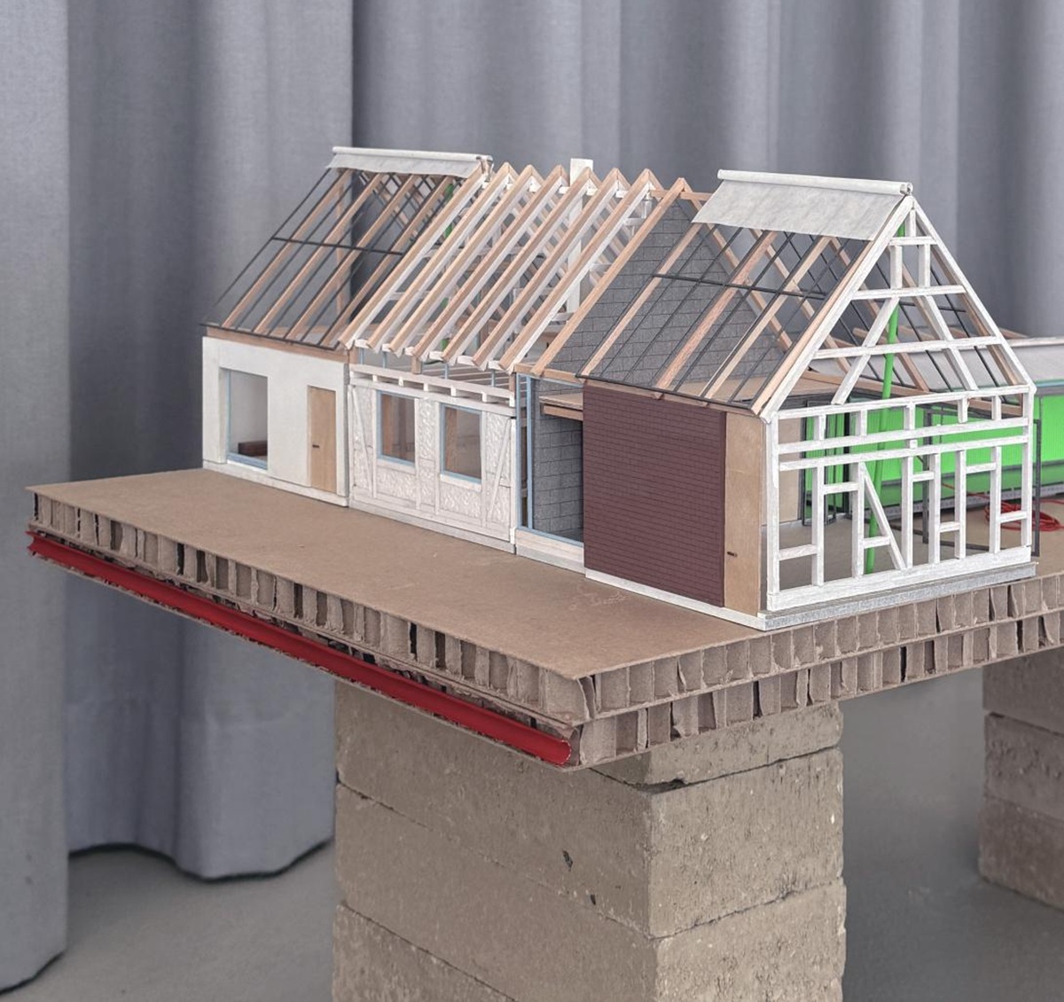 Single-family homes are among the most common domestic architectures in Germany. As a basis for this project, the theoretical statement The Boundaries of Labor which examines domestic space in the crisis of (elderly) care, identifies single-family homes as the place where the current crisis becomes most evident. They conceal the work of (mostly female) caregivers and isolate those that depend on care. Drawing on research and conversations with caregivers, the project proposes scenarios that examine potentials for transformation in a single-family home neighborhood in Borken, Germany, over the next 30 years. Differing in scale, these interventions mean to facilitate social connectivity, mutual aid, civility and adaptability for changing life circumstances of the residents. The aim is to create an architecture which considers the (affective) relations that residents form with their surroundings—by fostering social and cultural acceptance as well as an increased visibility of aging.