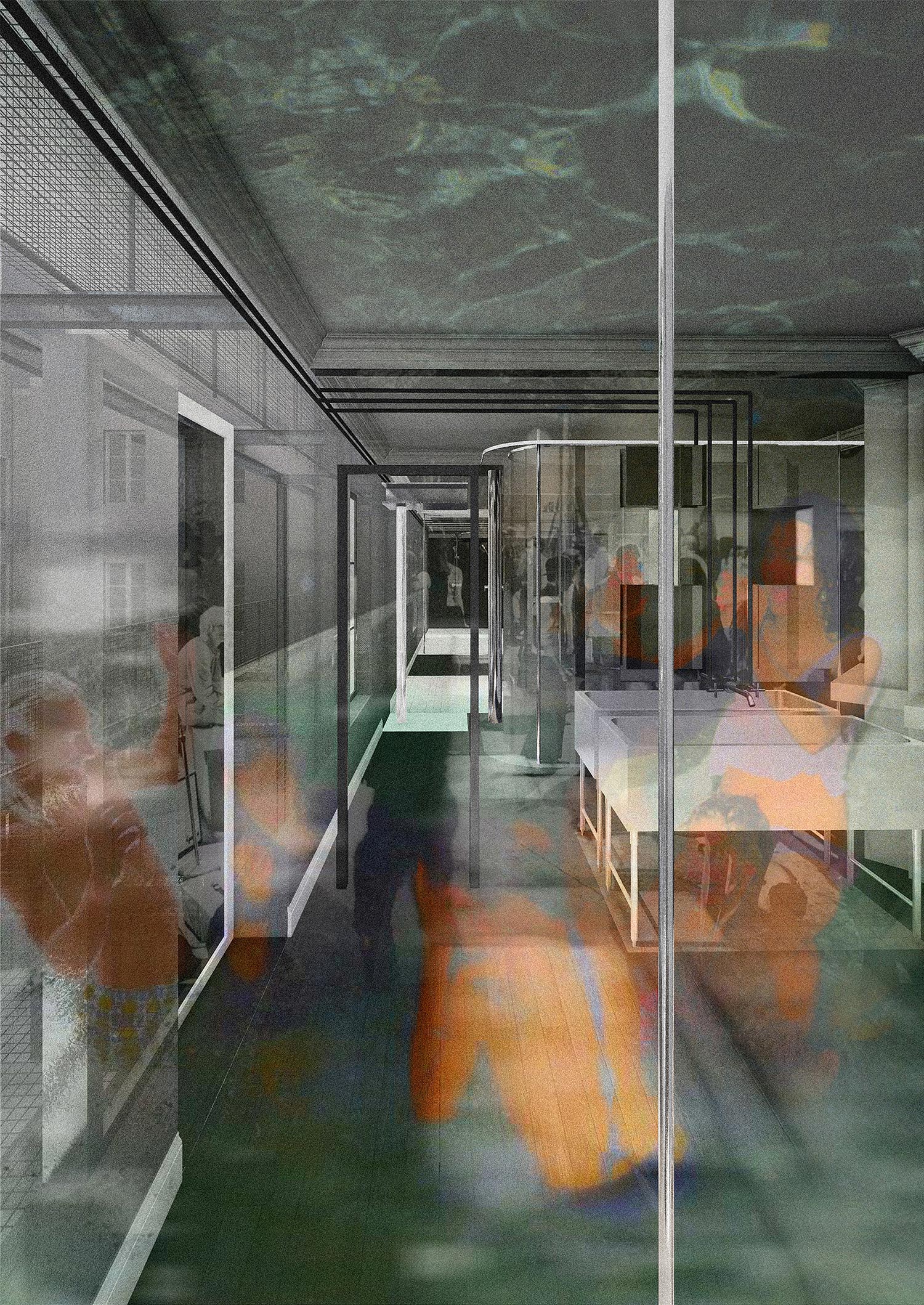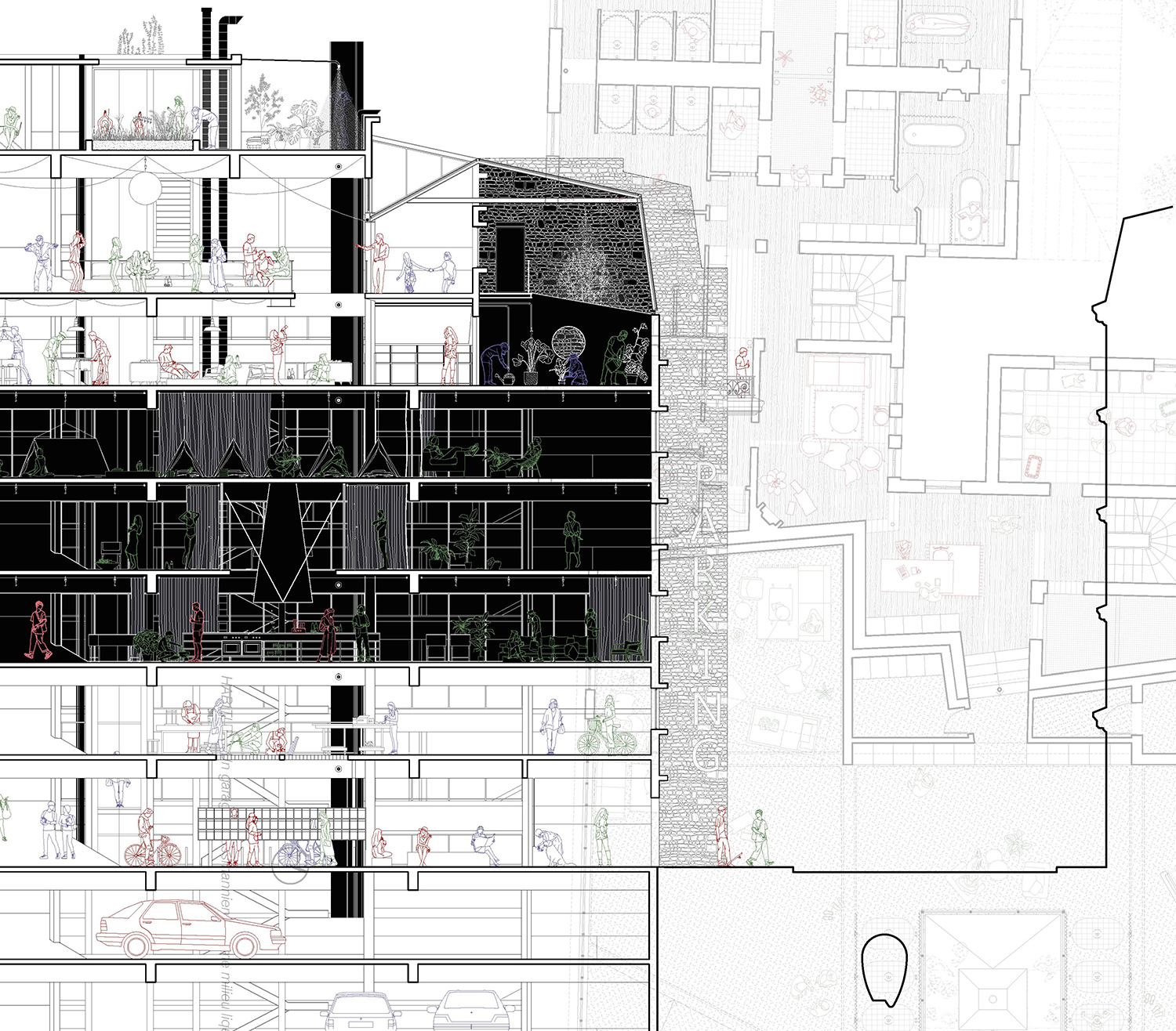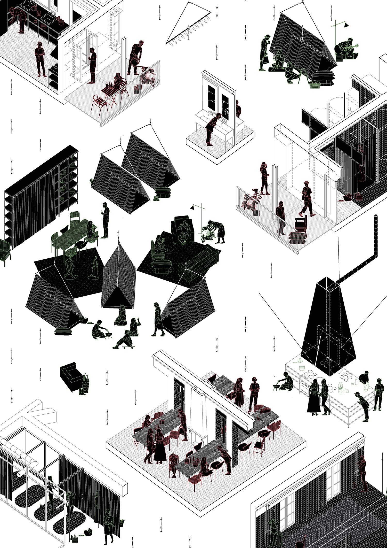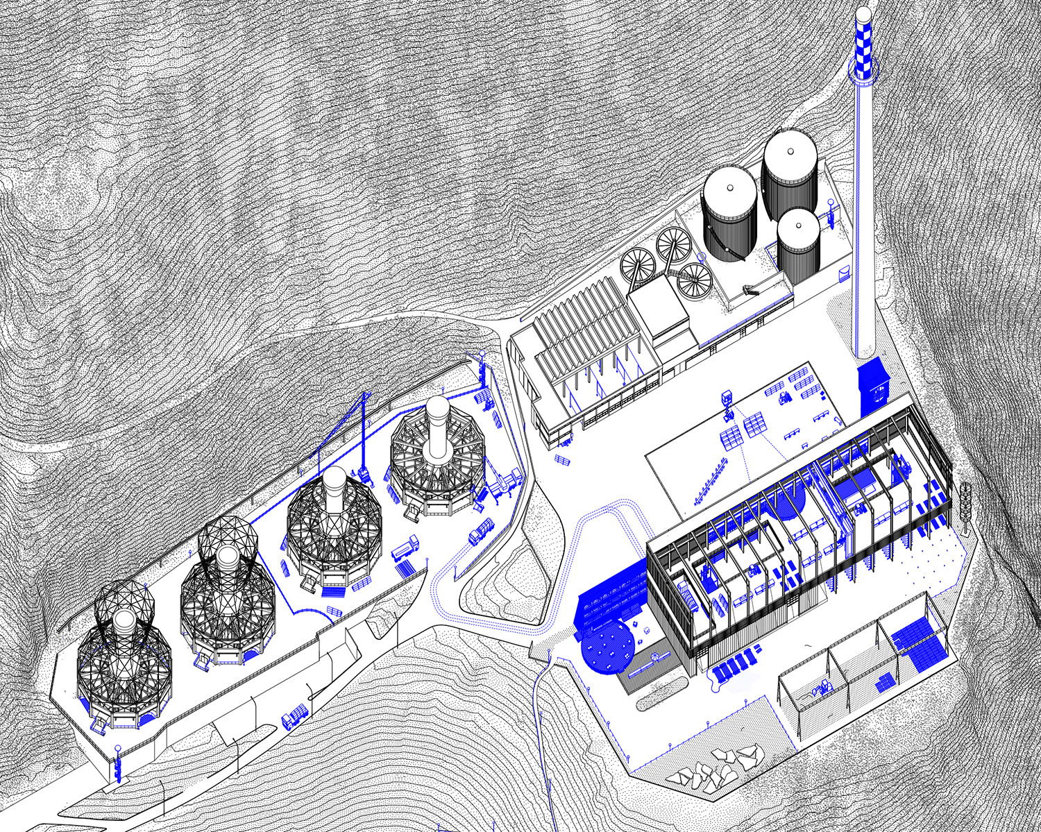 Wie sieht die Zukunft der Fabrik und ihr Image im städtischen Umfeld aus? Im Stadtteil Sévelin in Lausanne, der heute weitgehend vom Dienstleistungssektor geprägt ist, fügt sich das Projekt in die letzte Gebäudegruppe aus den 1930er Jahren ein, die an das Recyclingunternehmen Goutte erinnert. Das Programm umfasst hauptsächlich ein Zentrum für die Wiederverwendung von Bauteilen aus dem Rückbau von Gebäuden in Lausanne, was seine Lage im Stadtzentrum rechtfertigt. Hinzu kommen Wohn- und Arbeitsräume für Handwerker, die Teil einer neuen Form der urbanen, lokalen und zirkulären Industrie sind. Die architektonische Maßnahme besteht in der Installation einer Überdachung, die das bestehende Gebäude schützt. Ihre modulare Struktur erstreckt sich punktuell um die Hallen herum, was einen schrittweisen Bau ermöglicht. Dieses Gitter, das wie ein großes Regal wirkt, gewährleistet den reibungslosen Ablauf des Programms und steht gleichzeitig im Dialog mit dem umgebenden Kulturerbe. Könnten Wiederverwendung und Industrie so das Stadtzentrum wiederbeleben?
