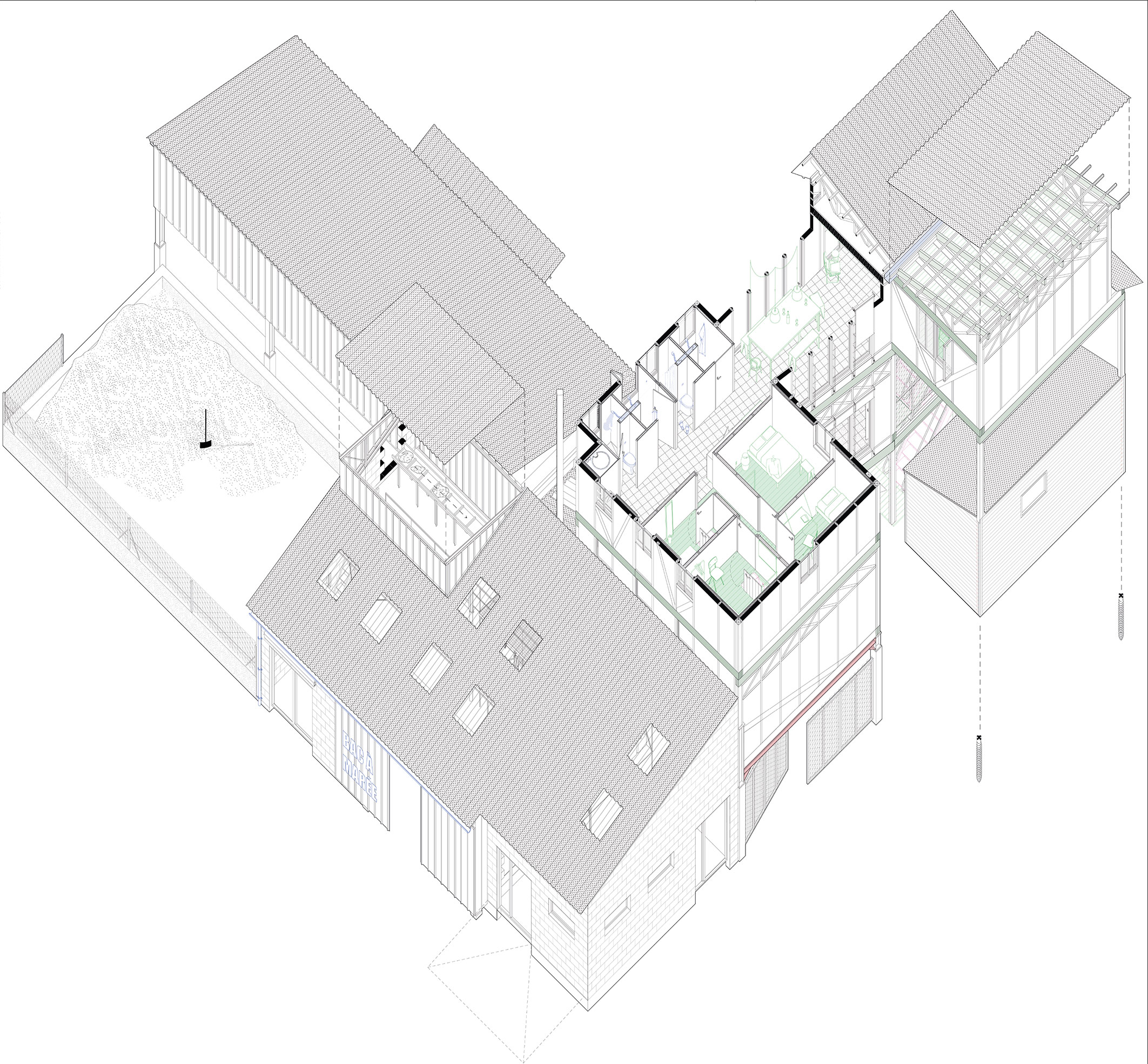 L'auteur propose une alternative à la densification verticale qui ne permet pas de solutions pour plus logements familiaux. Les extensions se font côté cour intérieure, et le projet requalifie entièrement ce lieu autrefois peu utilisé en proposant toutes les aménités nécessaires à son projet.