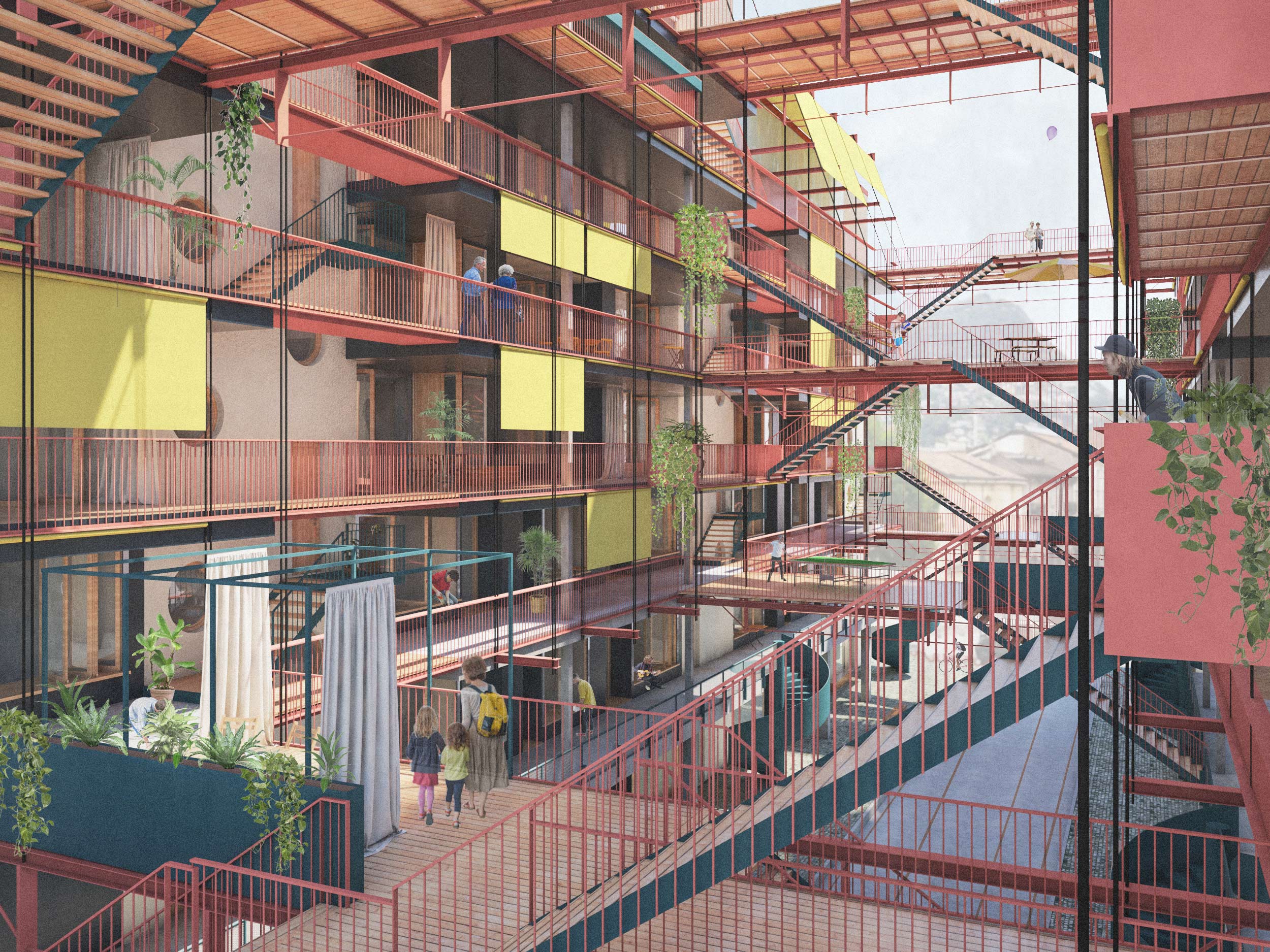 Diese Arbeit wirft ein optimistisches Licht auf die städtebauliche Transformation von Emmenbrücke. Im Zentrum steht die Frage nach den grundlegenden Werten dieser neuen Siedlungen: weg von blosser Gewinnmaximierung und sozialer Fragmentierung hin zu einem Ansatz, der den sozialen Mehrwert und städtebaulichen Nutzen – im Sinne einer Stadtrendite – in den Vordergrund stellt. Indem sie individuelle Ambitionen überwindet und deren Mechanismen auf öffentliche Relevanz umlenkt, verwandelt ihre Vision bislang isolierte Neubauten und Restflächen entlang der Gleise in ein Netzwerk aus vielfältigen, miteinander verbundenen Räumen und Wegen. Ein durchgehendes gemeinschaftliches Sockelgeschoss – mit öffentlichen Arkaden und Galerien – verknüpft die Flussräume an Reuss und Kleine Emme mit dem Bahnhof und macht sie für Fussgänger:innen und Radfahrer:innen zugänglich. Auf diesem gemeinsamen Fundament erheben sich präzise gesetzte Wohngebäude, die einen erheblichen Anteil an bezahlbarem und anpassungsfähigem Wohnraum bieten – eine Wohnform, die in Luzern und Umgebung dringend benötigt wird.