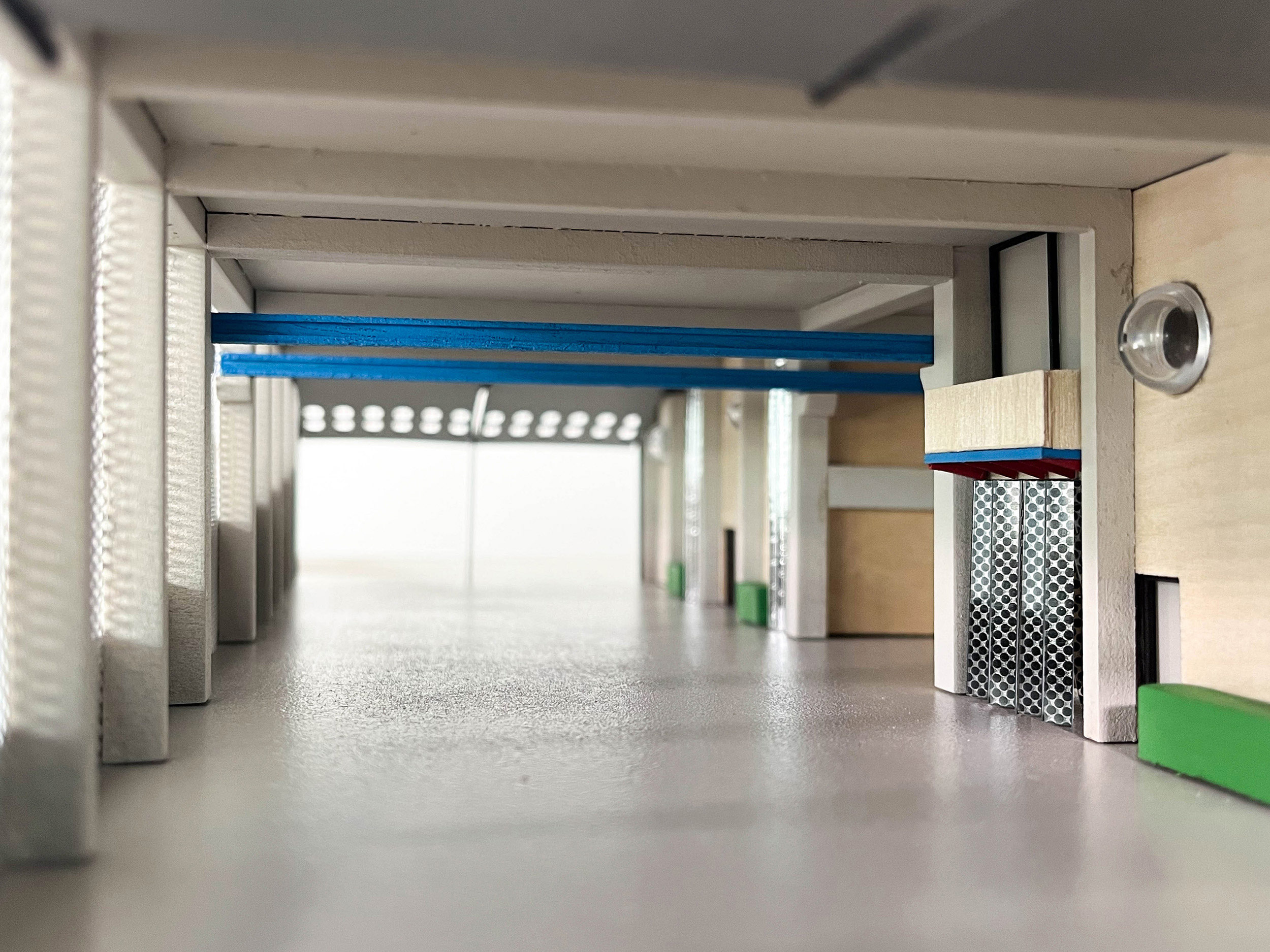 Unique ville Suisse connectée à la mer du Nord par le Rhin, Bâle se situe au cœur de la logistique nationale. En pleine transformation, le port de Bâle-Kleinhüningen, première interface du pays, accueillera dans les prochaines années des milliers de nouveaux logements et emplois avec le déplacement des activités industrielles vers le nord du port, conséquence du projet du nouveau terminal Gateway Basel Nord. En rapprochant sous un même toit la gestion du port, sa capitainerie, un centre de formation pour les métiers de la logistique et du domaine portuaire, ainsi qu'une cantine, le projet favorise les relations et les échanges entre professionnels, apprentis et étudiants. Situé le long du Rhin, face au Dreiländereck – point symbolique de rencontre entre la Suisse, l’Allemagne et la France – le projet se dresse comme un écran à l’échelle des silos qui constituent le paysage industriel des alentours immédiats. Rationnel, le bâtiment se déploie alors en assumant les exigences actuelles du programme tout en anticipant ses besoins futurs. Une desserte verticale relie les halles de production d’un côté, aux salles de classe et bureaux de l’autre via des espaces appropriables. Reprenant l’inclinaison fonctionnelle des fenêtres des timoneries à 18°, la façade de la capitainerie s’ouvre sur le Rhin tout en donnant au bâtiment une image forte et symbolique qui marque cette nouvelle entrée dans la ville comme un signal pour le port.