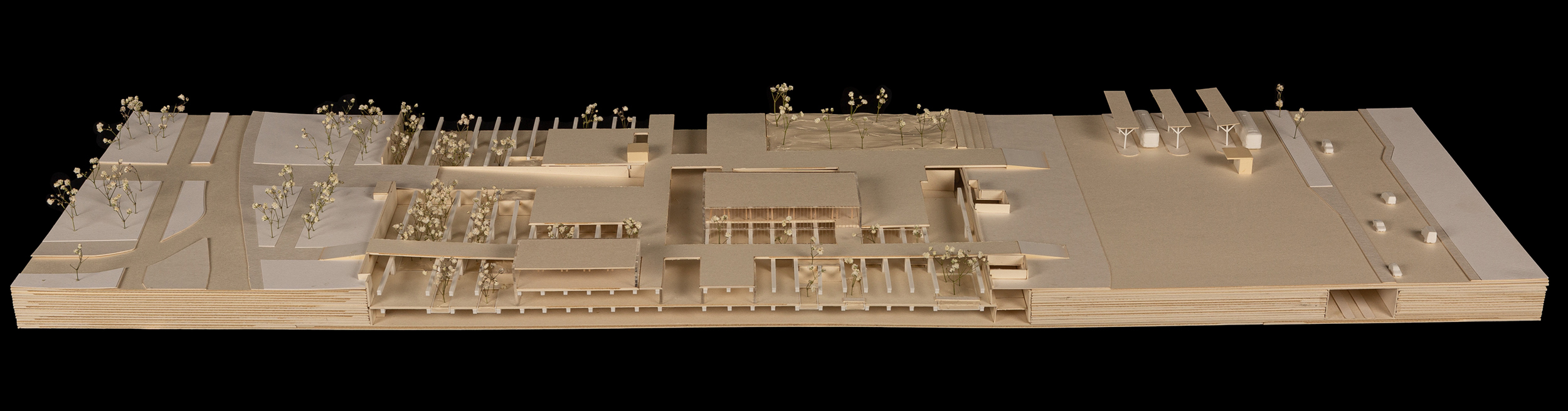 The aim is to enhance connections between the existing communities and provide public spaces (in this monofunctional residential neighborhood) on a more human scale. The project begins by rethinking the urban plan and envisions a change in viability to minimize the traffic of cars between Seimilano and the metro station. The proposed transformation involves the adaptation of the existing heavy infrastructure of the parking space. With the removal of the end station, the parking will be readapted to have only one level for cars, while the upper levels will be designated to pedestrians and will house new public buildings such as an art gallery, library, co-working spaces, and more.