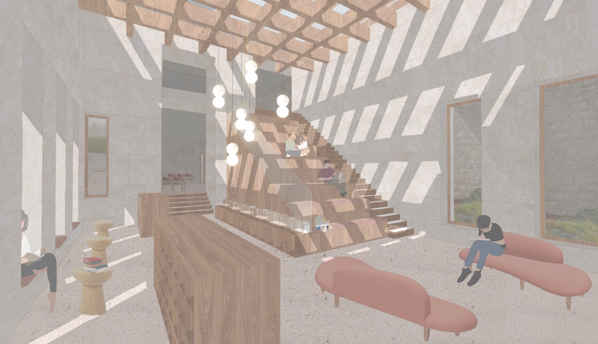 Ce projet s’articule sur plusieurs problématiques autour des notions de valorisation et de préservation patrimoniale. Programmatiquement, il s’agit de proposer des équipements sociaux-culturels qui permettent de garder une activité annuelle afin de lutter contre le phénomène de la « désertification » sociale observée sur le territoire rural français. Le travail propose donc une permanence scolaire et médicale ainsi qu’un centre culturel. Un programme à vocation touristique doit ancrer une activité qui ne serait pas saisonnière comme c’est le cas des régions viticoles. Une analyse extrêmement soignée de la morphologie du village a permis d’identifier des sites d’intervention qui permettent à ces nouveaux programmes de se fondre pour ainsi dire dans la structure villageoise tout en mettant en évidence les qualités intrinsèques des lieux désignés, les perspectives visuelles, les espaces signifiants, les matérialités. Finalement ce choix de matériau local assure une vertu environnementale exceptionnelle en termes d’usages, de mise en oeuvre, de grammaire architecturale et spatiale.