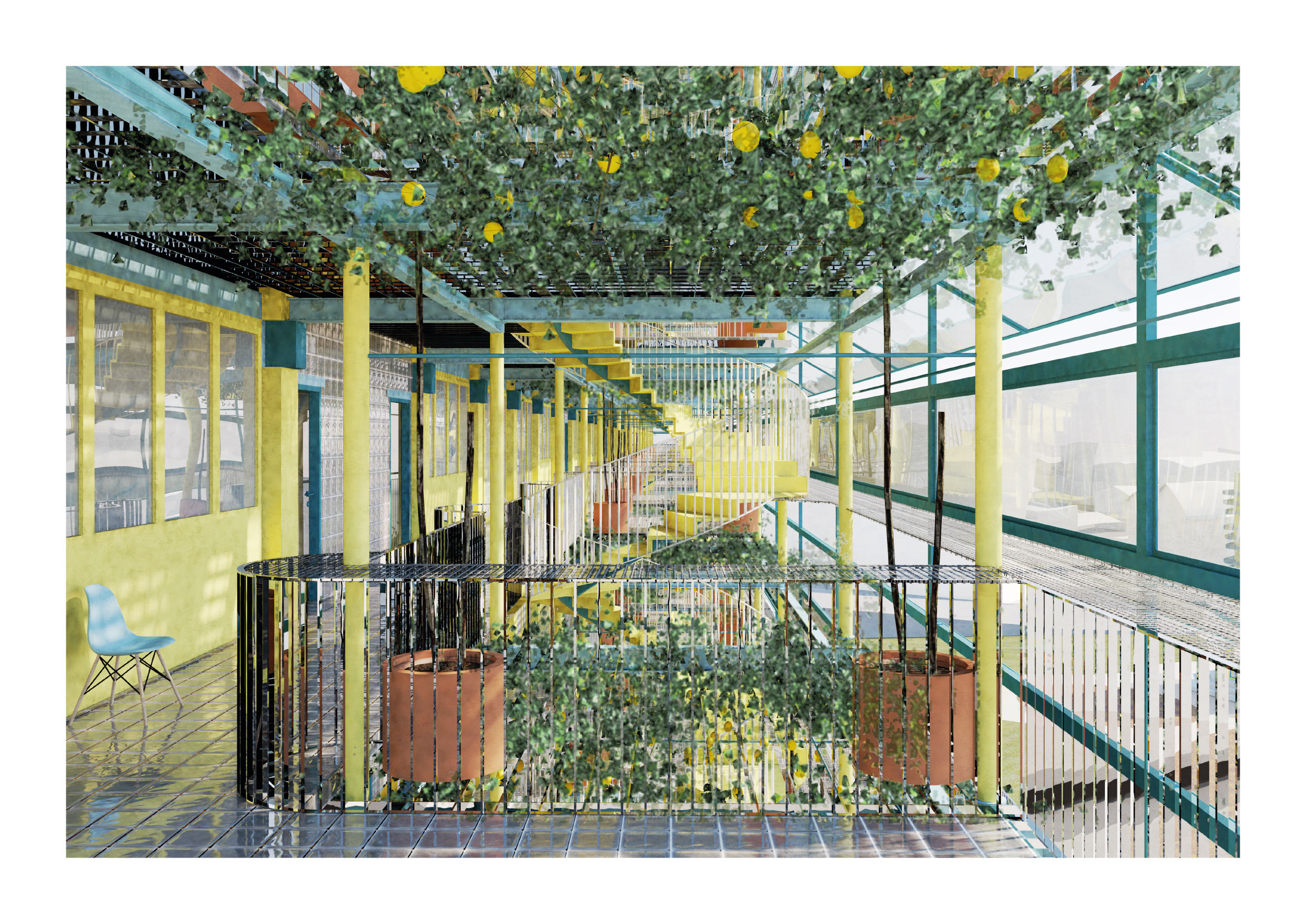 Das Gewächshaus ist produzierender und bewohnter Raum zugleich – ein Zitronenhain mit Aufenthaltsqualität. Die machina CITREA»ist sinnbildlich zur Verlagerung des schweizerischen Klimas in Richtung mediterrane Zone. Dies soll auch zur Reduktion des CO2-Verbrauchs durch weniger Import beitragen. Als «machina CITREA»- Bewohner und Bewohnerin lebt man mit und inmitten von Zitronenbäumen.