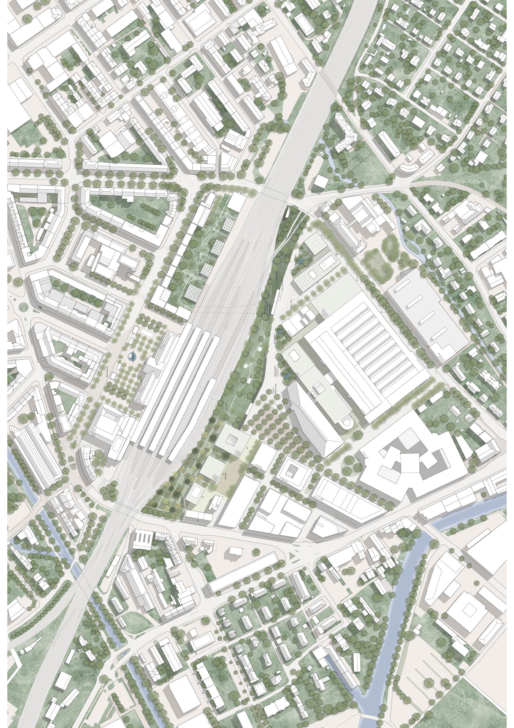 Um die fehlenden Nutzungen zu ergänzen und den Wohn-, Freizeit- und Dienstleistungsbedarf des Stadtteils zu decken, wird das Potenzial einer baulichen Verdichtung genutzt. Die Verflechtung von städtebaulichen Anforderungen mit klimatologischen Kriterien ermöglichte einen Lösungsvorschlag, der ein gesundes Gleichgewicht zwischen den beiden Polen Stadtentwicklung und Stadtklimatologie und den damit verbundenen unterschiedlichen Anforderungen an die urbanen Strukturen schafft.