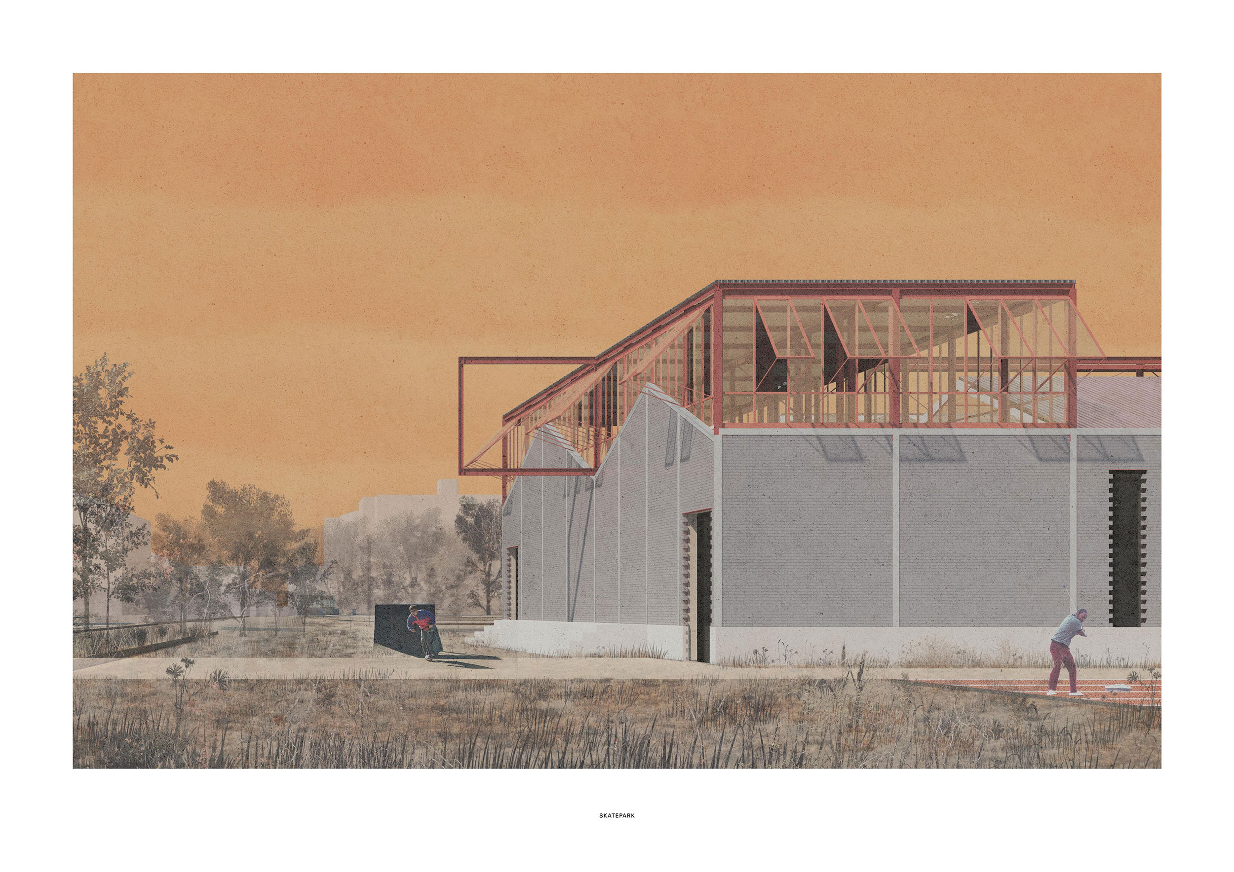 Almost 350,000 m2 of commercial space are empty in the canton of Geneva. Wouldn’t it be urgent to reinvest these vacant spaces and rethink our models of housing accessibility, as well as our ways of conceiving living together on a building and neighborhood scale? Cooperative housing is a popular answer today, and while it offers many advantages, it remains very limited in terms of access, both financially – the price per square meter to invest is now mainly affordable for the middle class – and in terms of physical access to the building for the rest of the neighborhood. This project proposes to rethink living together both inside and outside the building, in order to build a solid, supportive social fabric with minimal intervention on the structure, while allowing for participative construction. In addition to offering communal spaces for residents, the building also features a first floor and roof open to the neighborhood’s remnants. Ideally located close to the station and the city center, it also incorporates workshops to make it a place for professional exchange.